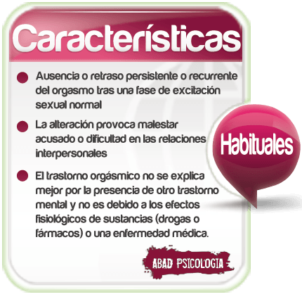 Al igual que en otras disfunciones sexuales que tratamos en ABAD Psicología, las herramientas de tratamiento son muy efectivas, teniendo una amplia probabilidad de éxito y con ello, que desaparezca el Trastorno del orgasmo, o anorgasmia.